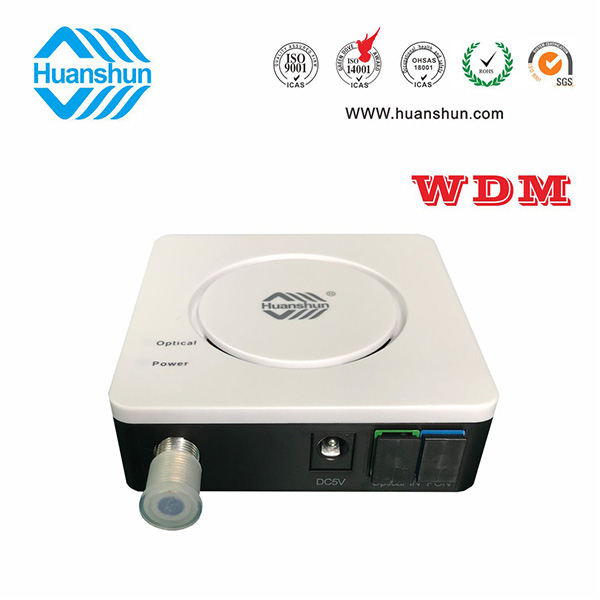 WDM型單輸出FTTH光接收機 | HSGS10076WX | CATV 1540~1565nm接收,-5~-15dBm/RF 76dBuv恒定輸出,PON:1270/1310/1490/1577nm;外置90~255V 5V 0.5A電源適配器 |