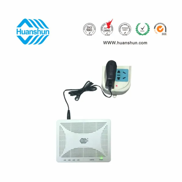 EPON ONU | HSO10 04 | EPON 4FE ONU ,PON端口接入,并帶盤纖裝置;外置 90~255V-12V 1A 電源線 |